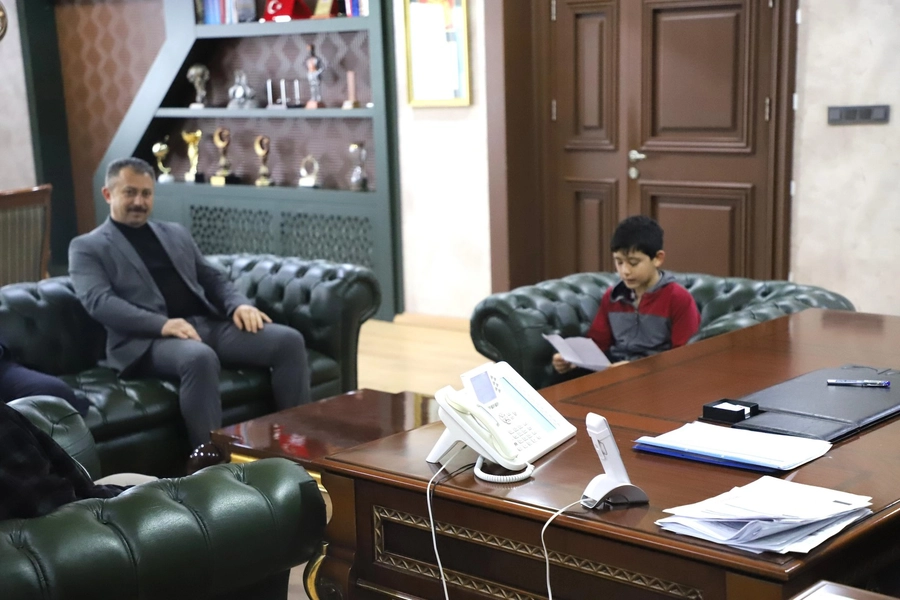 Belediye Başkan Vekili Aydın Demirdirek, Okul Müdürü Ahmet Demircan ve başarılı öğrenci Hasan Cangül’ü makamında kabul etti. Öğrenciye başarılarının devamını dileyen Demirdirek, azminden dolayı kendisini kutlayarak hediyelerini takdim etti.