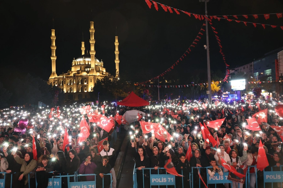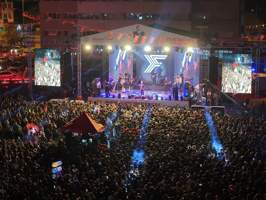 Cumhuriyet’in 102. yılı dolayısıyla Cumhuriyet Meydanı’nda sahne alan ünlü sanatçı Fettah Can, Kırıkkale halkına unutulmaz bir gece yaşattı. Yoğun yağışa rağmen meydanı dolduran binlerce vatandaş, ellerinde Türk bayraklarıyla şarkılara eşlik ederek Cumhuriyet coşkusunu doyasıya yaşadı. Kırıkkale Belediye tarafından organize edilen konser, Cumhuriyetin 102. yılı kutlamalarının en görkemli etkinliklerinden biri olarak hafızalara kazındı. Kırıkkaleliler, yağmura rağmen alanı terk etmeyerek “Cumhuriyet aşkı ıslanmaz” mesajı verdi.