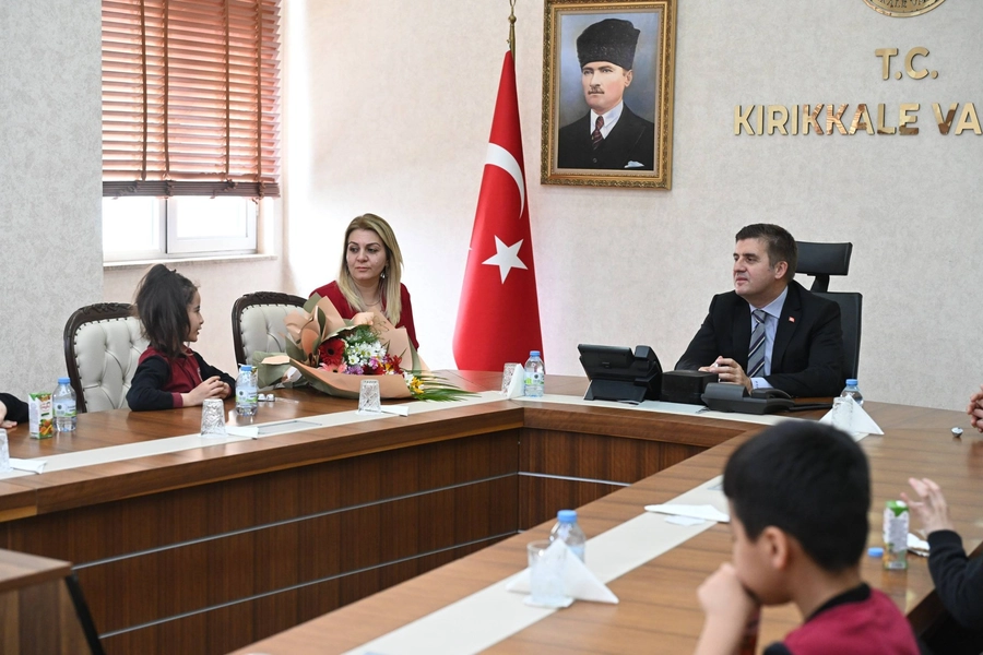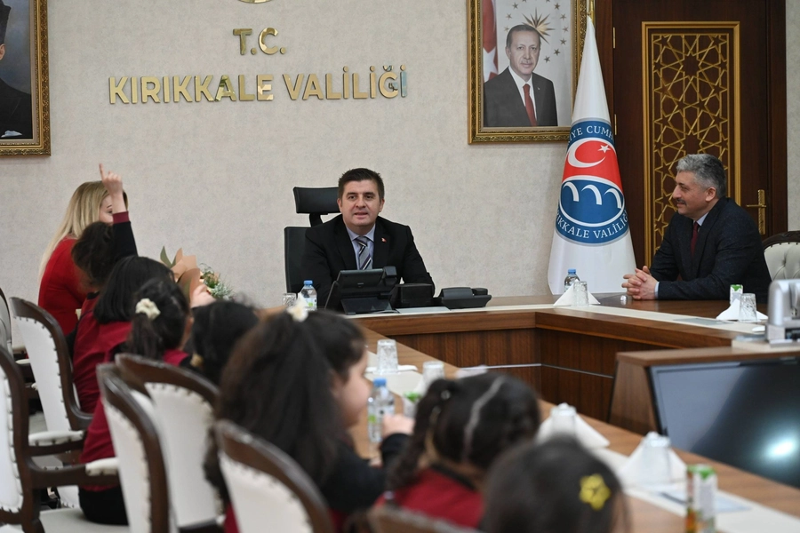 Kırıkkale Valisi H. Engin Sarıibrahim, Mehmet Uzelli İlkokulu’nun minik öğrencilerini makamında ağırlayarak hafızalardan silinmeyecek bir buluşmaya imza attı.