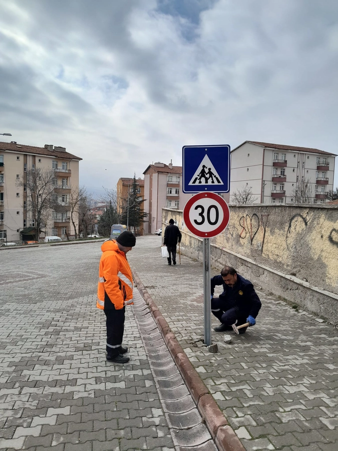 Kırıkkale Belediyesi Ulaştırma Hizmetleri Müdürlüğü ekipleri, şehir genelindeki okul önlerinde kapsamlı bir trafik düzenleme çalışması başlattı. "Okul yollarında hız değil, güvenlik kazansın" parolasıyla hareket eden ekipler, belirlenen noktalara hız limit uyarı levhaları ve yaya geçidi tabelaları yerleştirdi. Sürücülerin okul bölgelerinde yavaşlamasını sağlamak amacıyla kritik noktalara hız kesici (kasis) montajları da yapıldı.